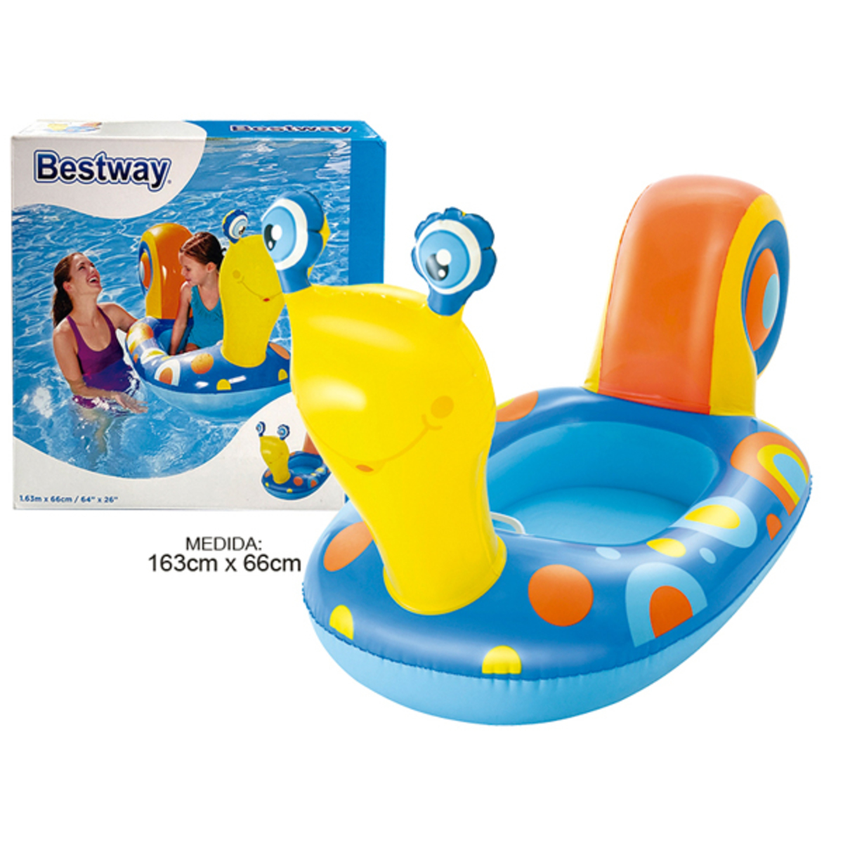 Barquita hinchable con forma de caracol para navegar en la piscina o en la orilla de la playa.