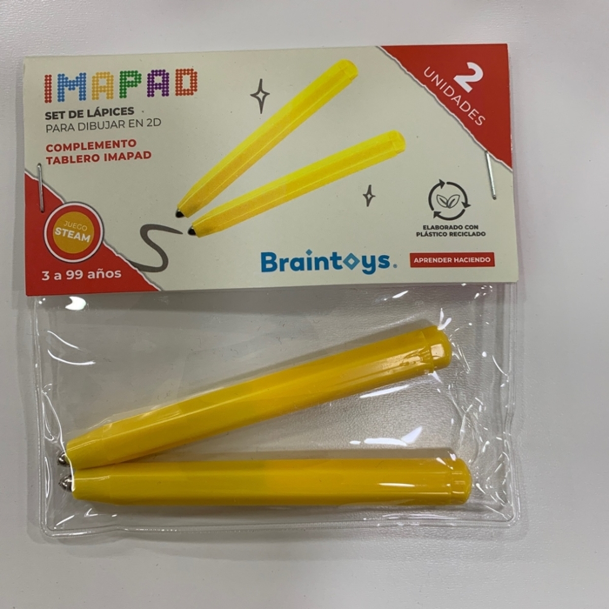 Set 2 lápices Imapad DESCRIPCIÓN -Repuesto solamente compatible con IMAPAD. -Todas las piezas están fabricadas en plástico NO tóxico. Medidas packaging: 14,5x10cm Edad: A partir de 3 años