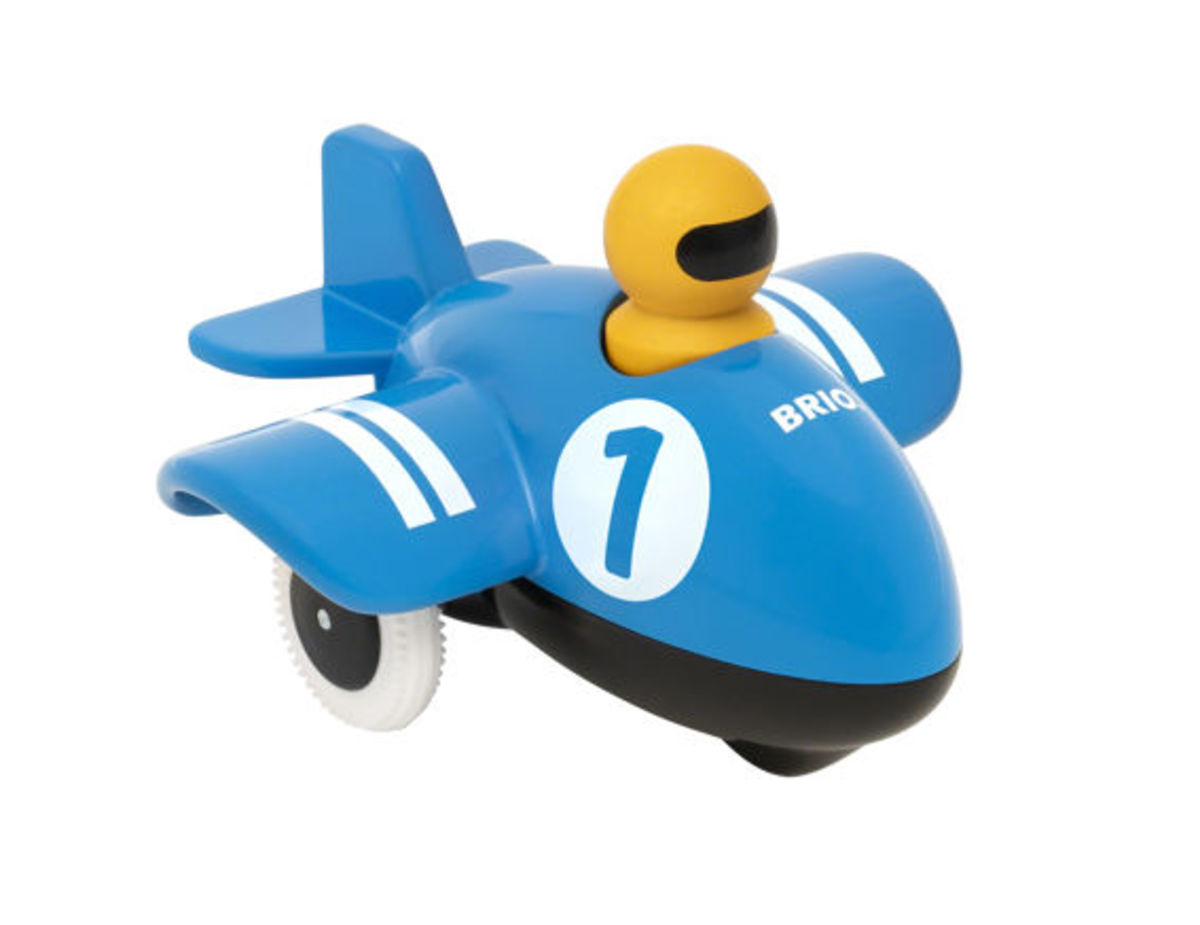 ¡Presiona la cabeza del piloto y verás cómo sale disparado a toda velocidad por la pista! El avión pulsa y avanza 30264 ha sido concebido para los niños pequeños. Su sencillo mecanismo de presión ayuda a desarrollar sus habilidades motoras. Este avión de juguete, que ha sido elaborado con madera y plástico resistentes, favorece el desarrollo de los niños al estimular la actividad y el movimiento cuando siguen al avión.
