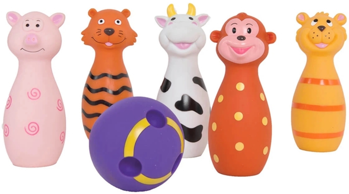 Pack juego bolos animalitos Los niños se divierten derribando los bolos y desarrollando sus habilidades. Juego que ayuda a desarrollar la motricidad.