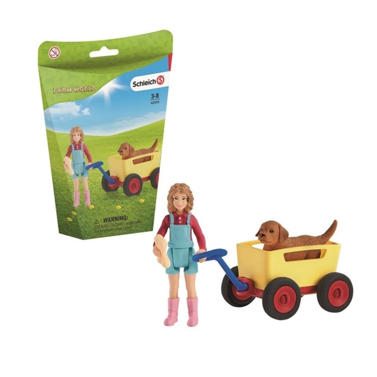Con la carretilla de Schleich FARM WORLD, Sarah y su cachorro Bello viven fantásticas aventuras.