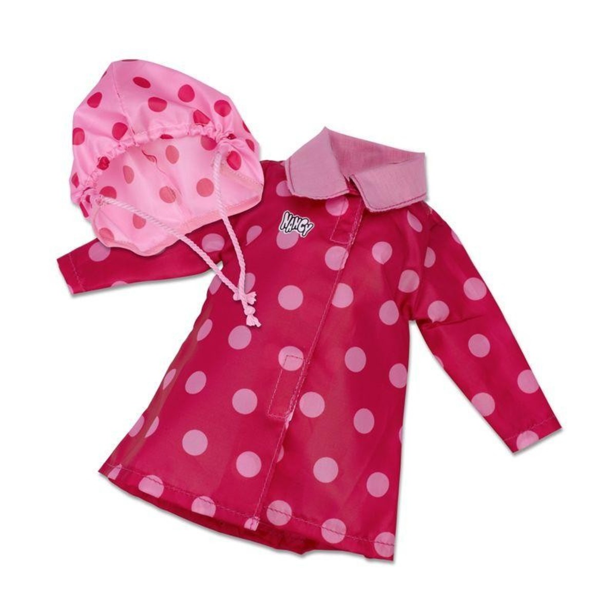 Un Día con Estilo para vestir a Nancy con un chubasquero rosa con lunares y capucha a juego .