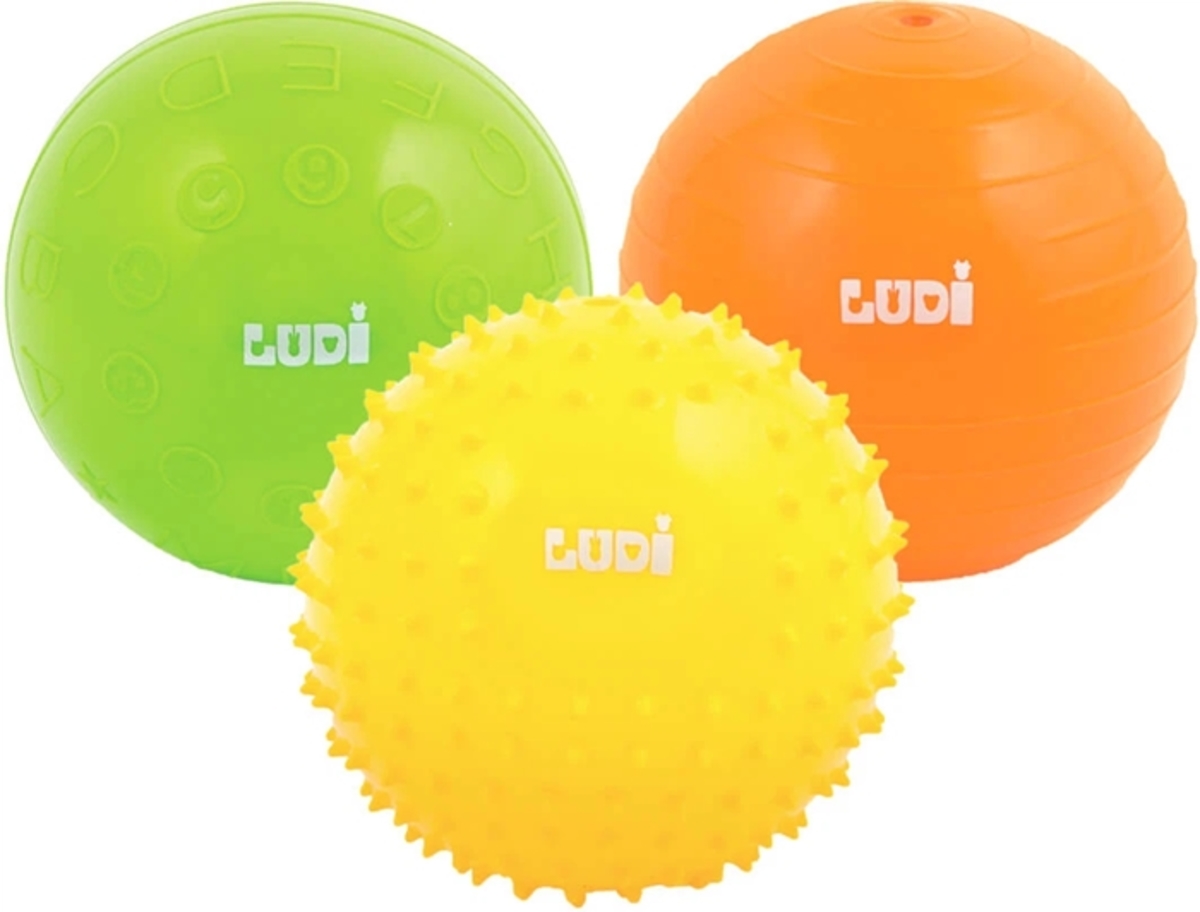 Pack de 3 pelotas sensoriales amarillo-naranja-verde Desarrolla el sentido del tacto del bebé mientras se divierte. Ideal para el aprendizaje y la coordinación de los movimientos. Plástico flexible, ligero e higiénico. E