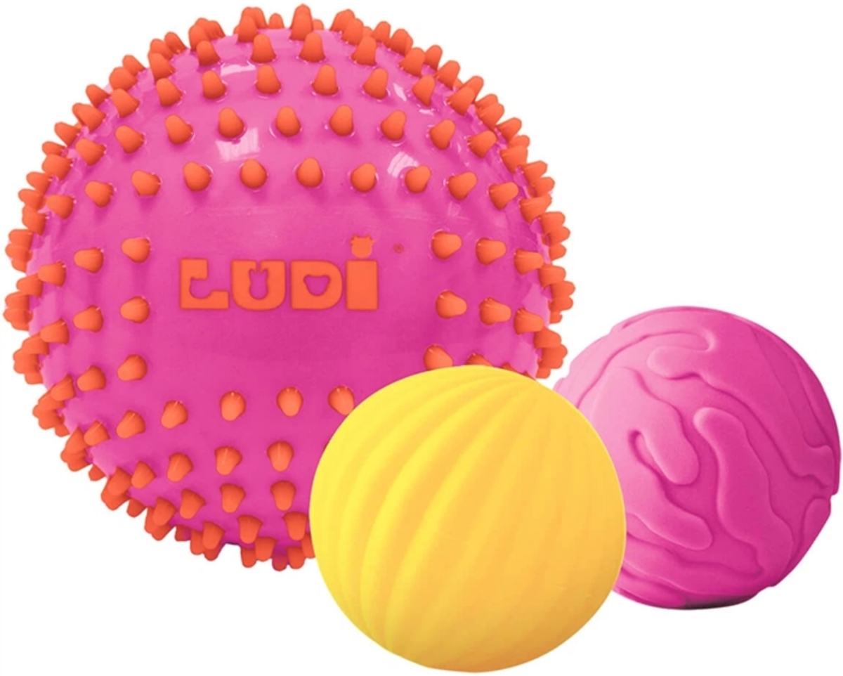 Pack de 3 pelotas sensoriales rosa-amarillo Despierta los sentidos del bebé mientras se divierte. Desarrolla la destreza y la motricidad. Plástico suave, ligero e higiénico.