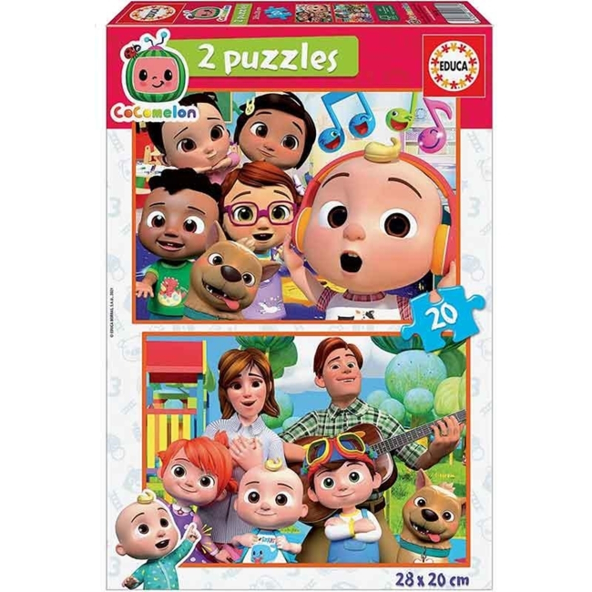 Dos puzzles de 20 piezas cada uno con los adorables personajes de Cocomelon: JJ, TomTom, YoYo, Bella, Nico, Cece, Nina, Cody, Bingo.